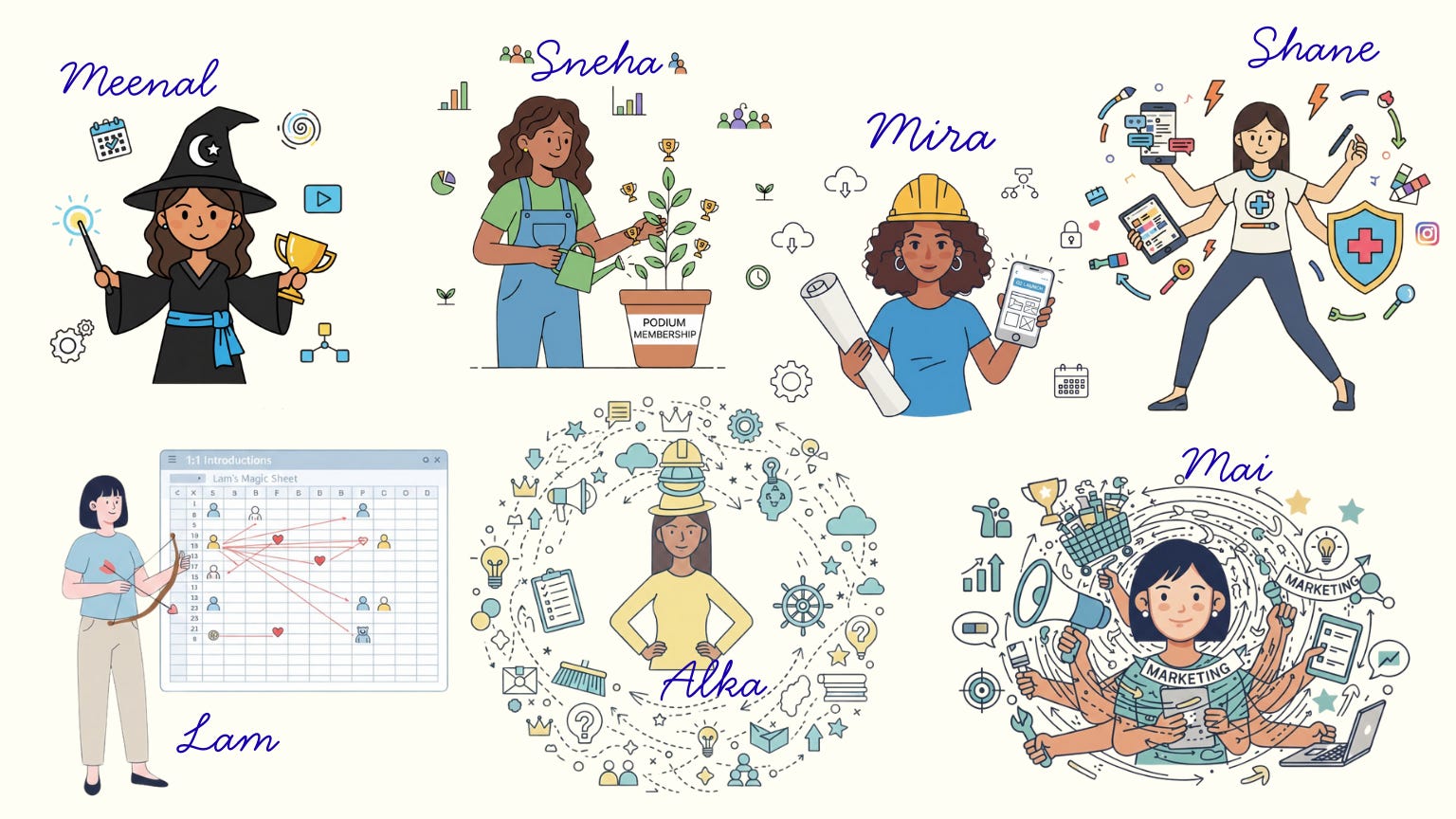 Podium is evolving. What once ran on founder powered, scrappy hustle is now becoming something more sustainable: a team that’s learning to carry things together, share the weight, and practice the interdependence we talk about with our members. Even this newsletter, once written by Mai & Alka pouring their hearts into every word, is now crafted by a team that’s learning to care just as deeply, together.